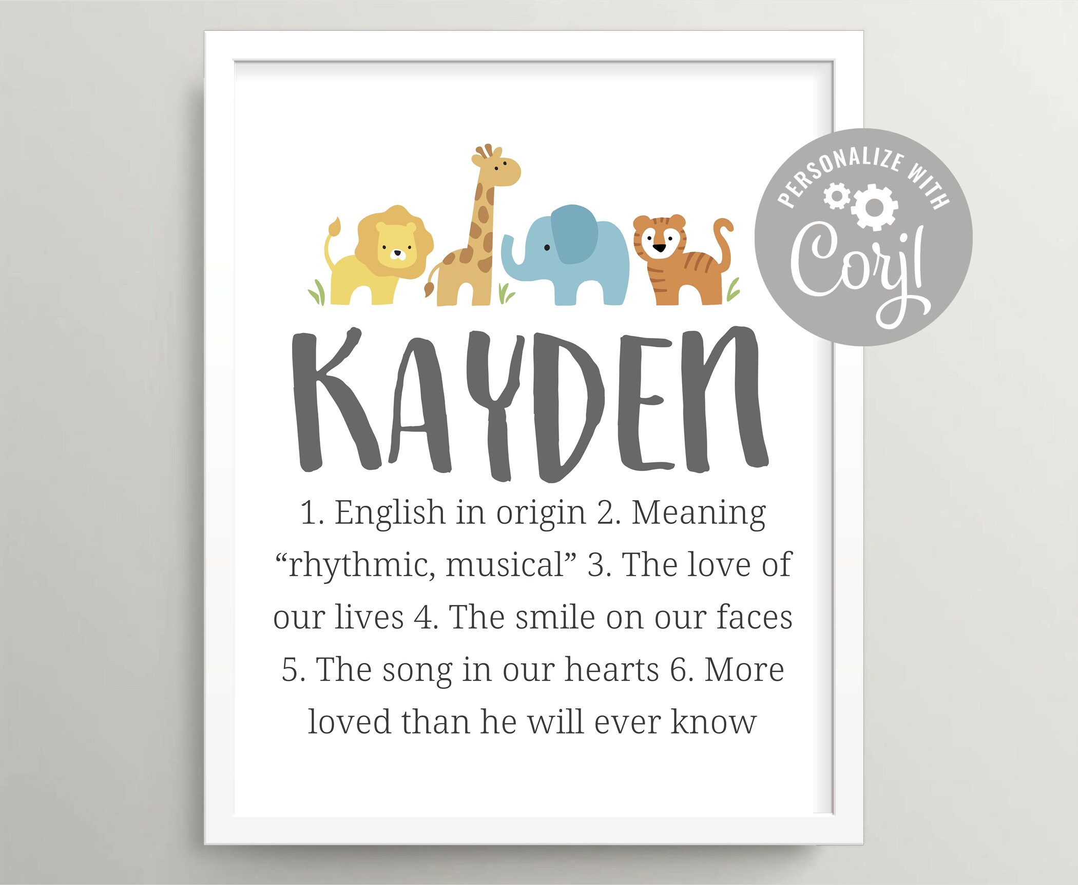 Zoo Animals Baby Boy Name Art Printable Safari Nursery Wall Etsy